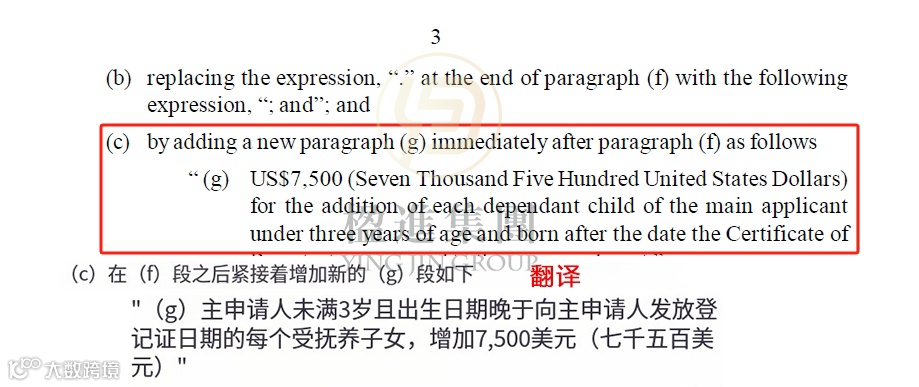 此条修订是增加费用7500美元的情况,对于主申请人3岁以下且在公民证书签发之日后出生的每个受抚养子女。