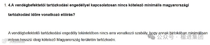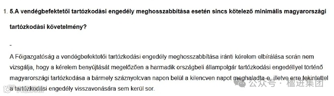 关于访客投资者居留许可,没有规定持有该许可时必须在匈牙利逗留的最低时间要求。