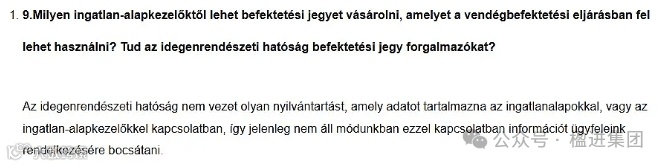 第三国国民若通过投资房地产基金获得访客投资者居留许可,必须持有该基金颁发的投资证书至少五年,其中至少40%的资金必须投资于匈牙利的住宅地产,且房地产基金的管理者必须在2016年XXX法律(简称Vbt.)规定的防御和安全采购合格市场参与者名单上。