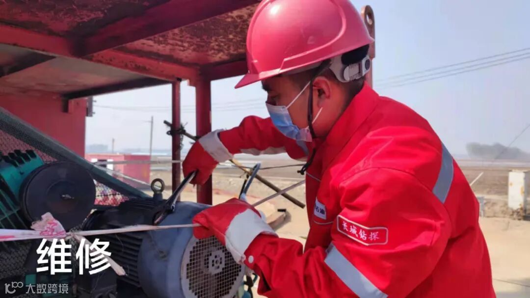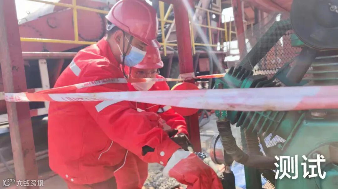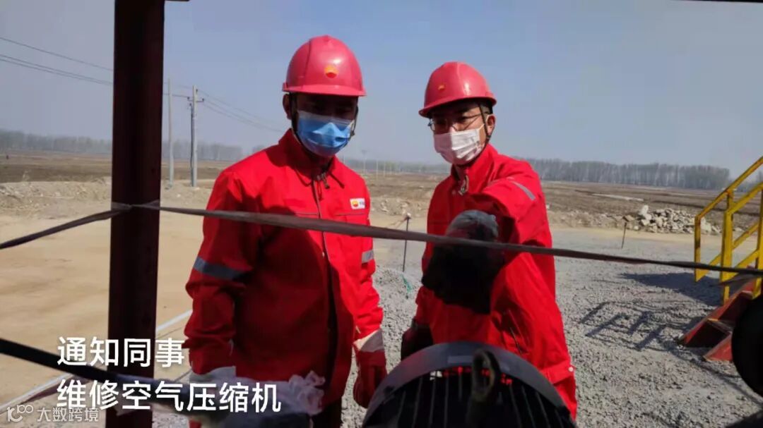 这是井下作业分公司试油测试项目部S06299队施工的马探1井现场,队长张金保一边维修空气压缩机,一边向员工们科普施工作业中上锁挂牌的重要性。