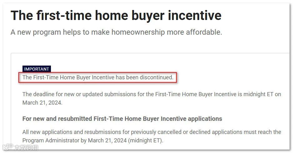上周,加拿大政府突然宣布,加拿大抵押贷款和住房公司终止首次购房者激励措施。根据 CMHC 的网站,新申请或重新提交申请的截止日期是东部时间2024年3月21日午夜。