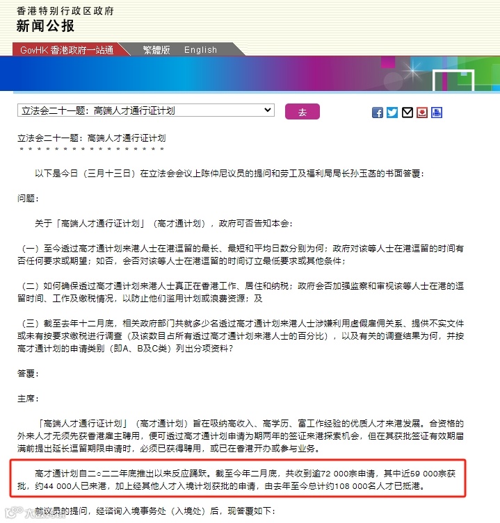 今天(13日),香港立法会会议上,议员陈仲尼就高才通计划向劳工及福利局局长孙玉菡提出了一系列问题,引起了广泛关注。在孙玉菡的书面答覆中,我们看到了高才通计划的运作机制和对香港的积极影响。