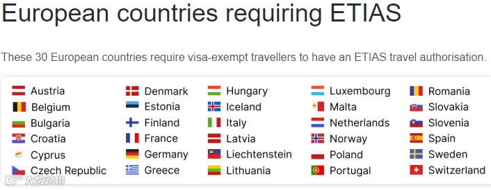 需要使用ETIAS电子旅行许可入境的30个国家包括: