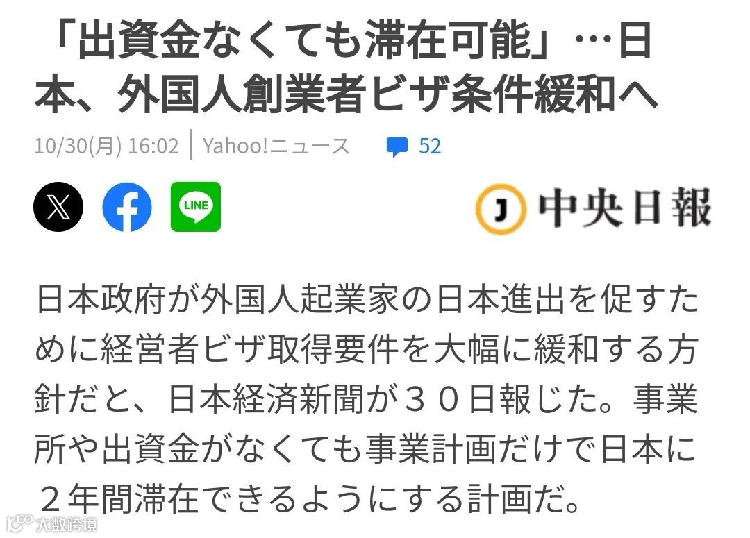 据日媒最新消息,日本政府计划将外国投资者进入日本创业的签证要求进行大幅放宽,以促进他们在日本的发展。