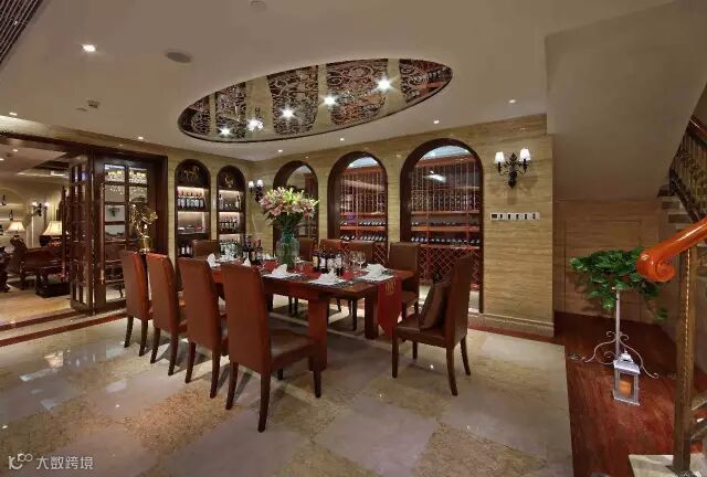 暖色大理石、木材、高贵典雅的家具、布艺、手工地毯、铁艺、艺术饰品、精雕细琢的细部和文化石自然元素材质在灯光的点缀下烘托出一种无法意言的意境。让人们感受到奢华、优雅的贵族气息。浪漫奢华而不失休闲风情在整个会所内静静蔓延,让宾客在休闲生态的优美环境中感受地中海异域文化,同时享受着尊贵优质的服务体验。