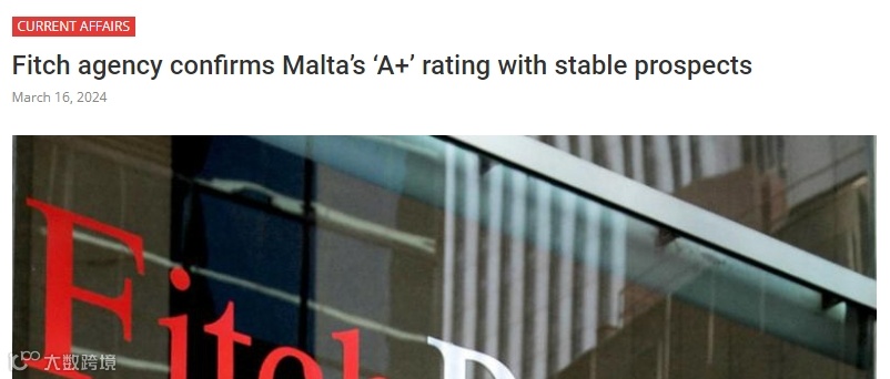 国际信用评级机构惠誉确认马耳他的“A+”评级,前景稳定。该机构在报告中强调了马耳他强劲的经济,同时指出了其他一些挑战。