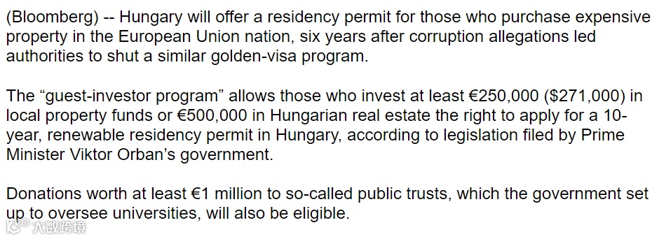 新的投资移民计划,预计将成为欧盟国家投资居留计划“新宠”,将吸引更多投资人聚焦匈牙利。