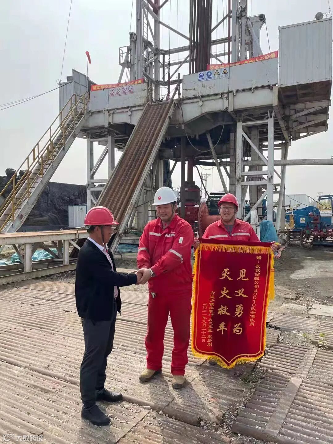 11月2日,钻井二公司40010队收到车主赵先生送来的锦旗,上面写着"见义勇为,灭火救车"。赵先生拉着队长丛新的手说:“太感谢啦!谢谢长城钻探的小伙子们,帮了我的大忙!”