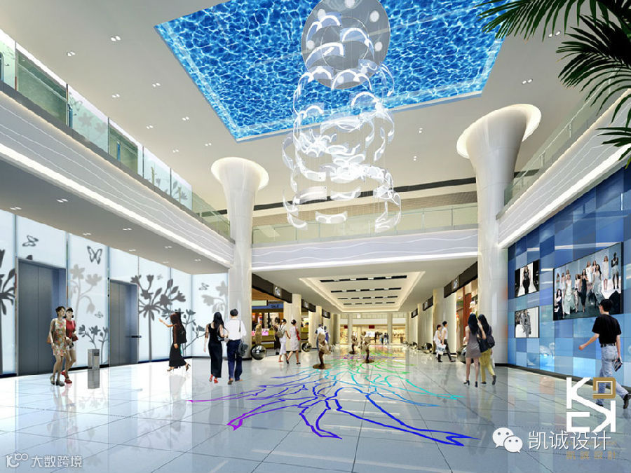 鱼购中心这一特定主题空间,结合粤信城的地理位置、商业文化为主要创意理念。主题“海洋之都”是本方案的设计创意,同时延续轻装修、重装饰,突出展示空间的设计原则,采用现代设计手法,以海洋生物雕塑元素,同时采用高科技的表现来装饰整个空间,体现粤信城的营销手法及“新、奇、特、酷、炫”的鱼购文化特点。
