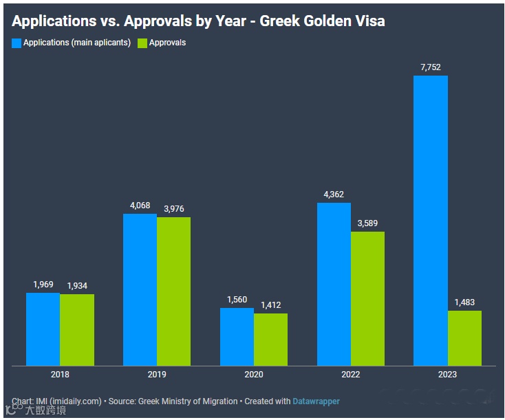 在2023年收到的7,752宗申请案中,希腊目前只批准了约1/5,仅拒签了14宗,不到已审理申请案的1%。