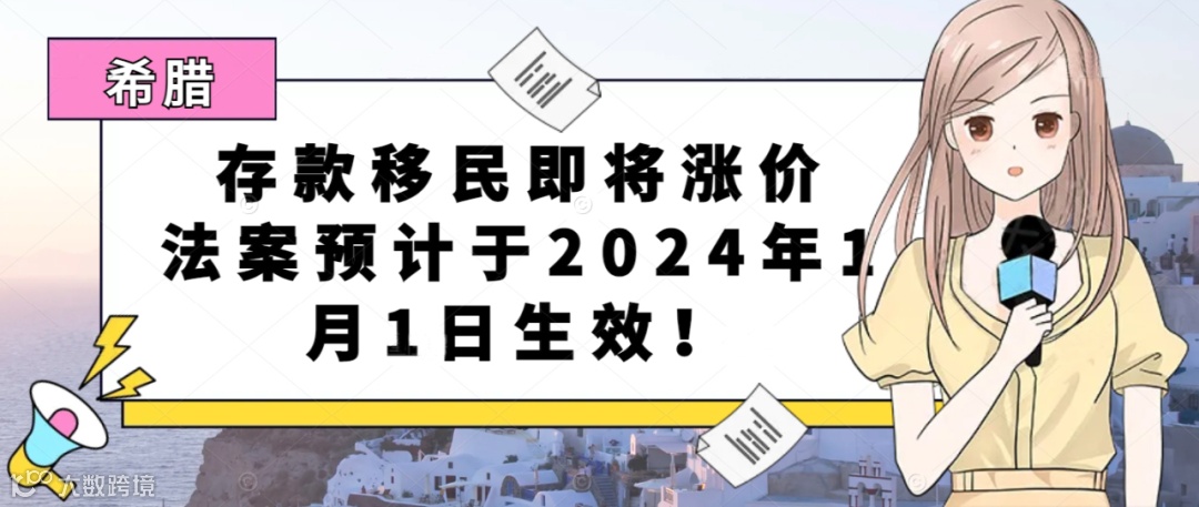 目前希腊律师已经确定,希腊40万欧存款移民即将涨价到50万欧,预计法案实施日期是2024年1月1日。