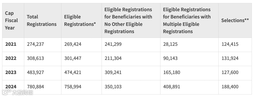 今年4月底移民局官宣了第一轮H-1B申请和抽签数据:共有780,884份H-1B网上注册,有效注册为758,994份,移民局共抽取了110,791份有效注册,粗略中签率为14.2%,有效中签率为14.6%,创造了自从有H-1B抽签程序以来的史低!