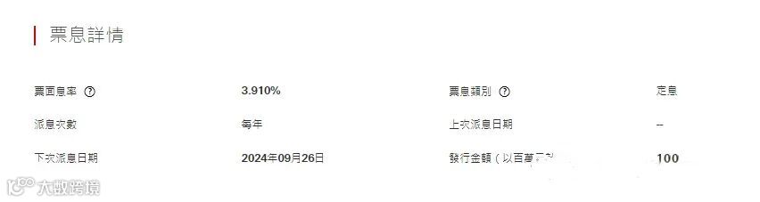 上面这张图是香港汇丰银行提供的存款证产品的示例,可以看出这只存款证的票面利率为3.91%,到期日是2024年9月26日,每年付息一次,到期支付本金。下一次派息日和赎回日是2024年9月26日。