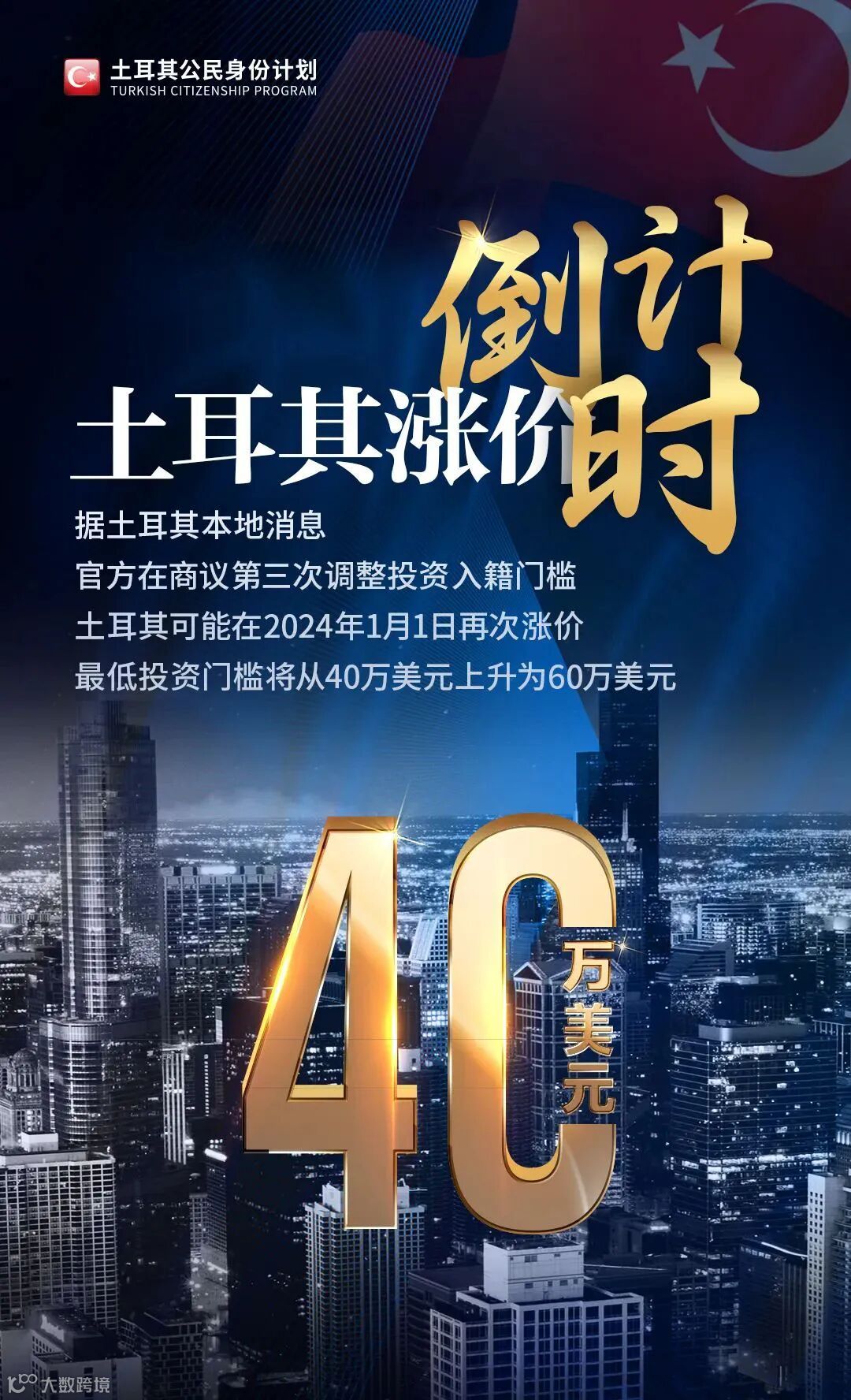 此外,土耳其当地的律师事务所也传来消息,称土耳其投资入籍的购房移民项目计划于2024年1月1日起实施,最低投资金额将从40万美金上调至60万美金。这一调整被视为土耳其政府吸引更多高净值投资者的举措,也与即将到来的选举密切相关。
