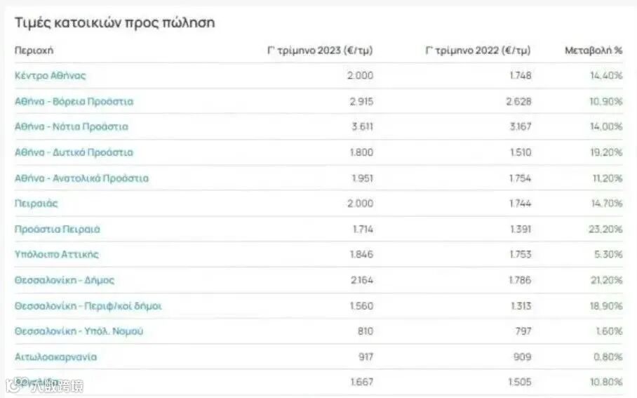 数据显示,比雷埃夫斯地区的房价涨幅最大,涨幅高达23.2%,今年每平方米均价1714欧元;紧随其后的是雅典西郊地区,房屋上涨至1800欧元/㎡,上涨幅度为19.2%!