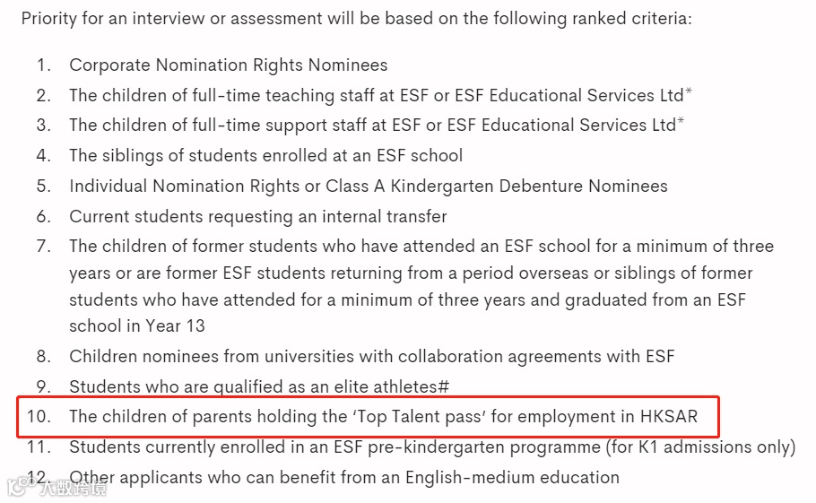 根据英基网站的信息,高才通签证持有人的子女在优先面试方面排名第10位,甚至在排队等待面试时会比目前就读英基幼儿学前班,准备升读K1的学生和其他需要英语教学的学生具有更高的优先权。