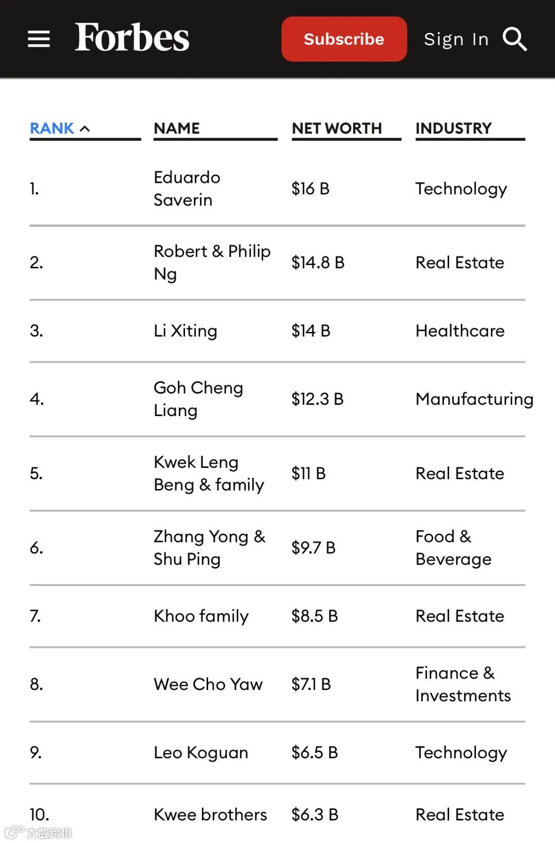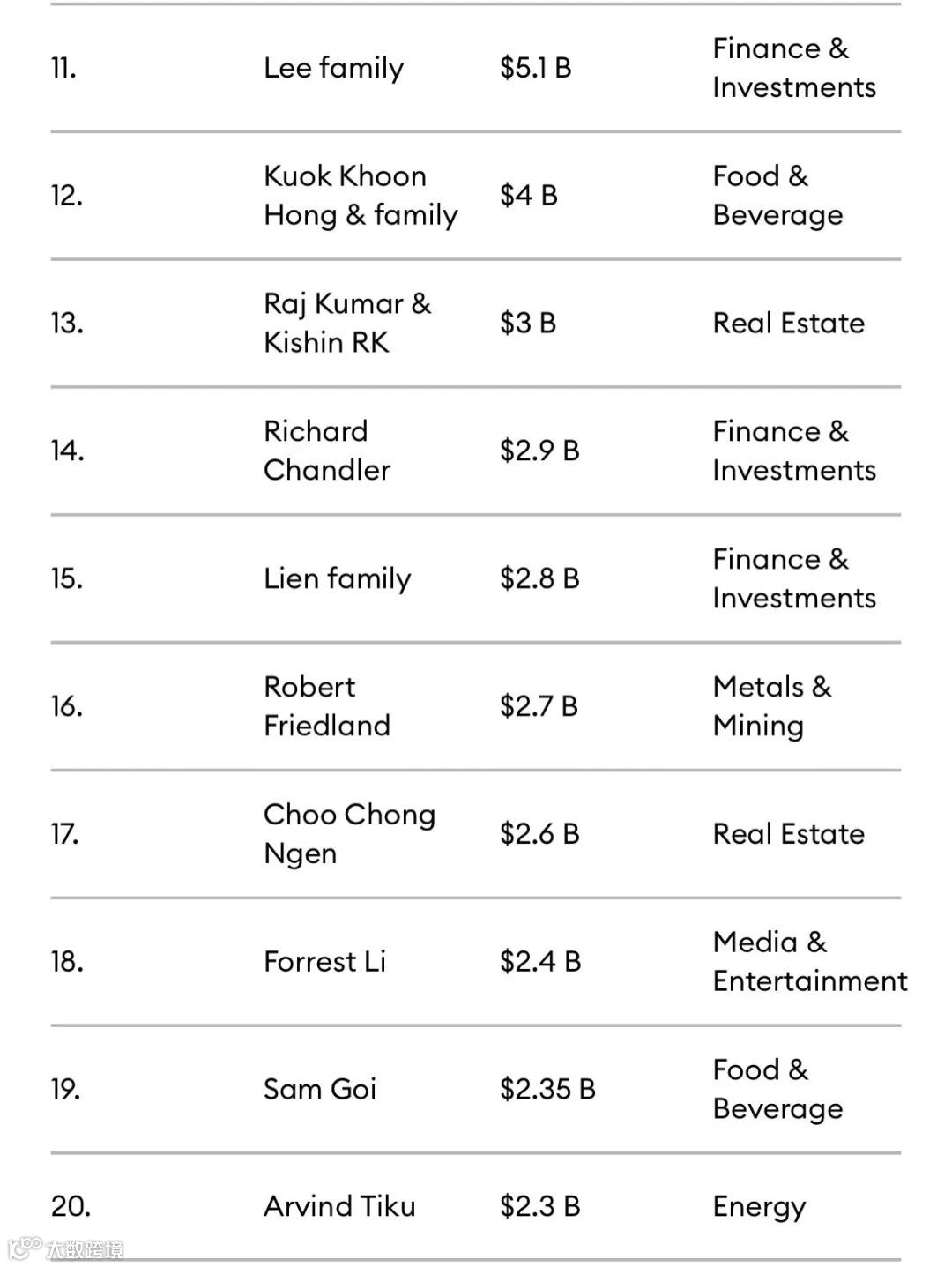 2023《福布斯亚洲》新加坡富豪榜前二十名如下: