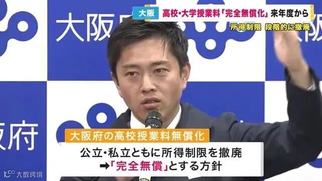 政府公布的“完全免费化”方案是,首先从下一年度的高三学生开始取消收入限制,2026年度将所有年级无偿。另外,对于在大阪公立大学等就读的大学生,从下一年度开始依次推进学费的无偿化的方针。