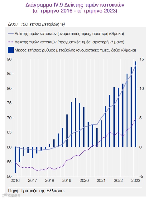 希腊央行近期的一份报告中,也记录了这一现象。报告指出,“2023年的前几个月,希腊房地产市场持续创造高增长的纪录,原因在于强劲的需求和有限的现代房地产供应。此外,现代房产的低供应量正逐渐导致价格上涨扩散到技术要求较低的房产。”