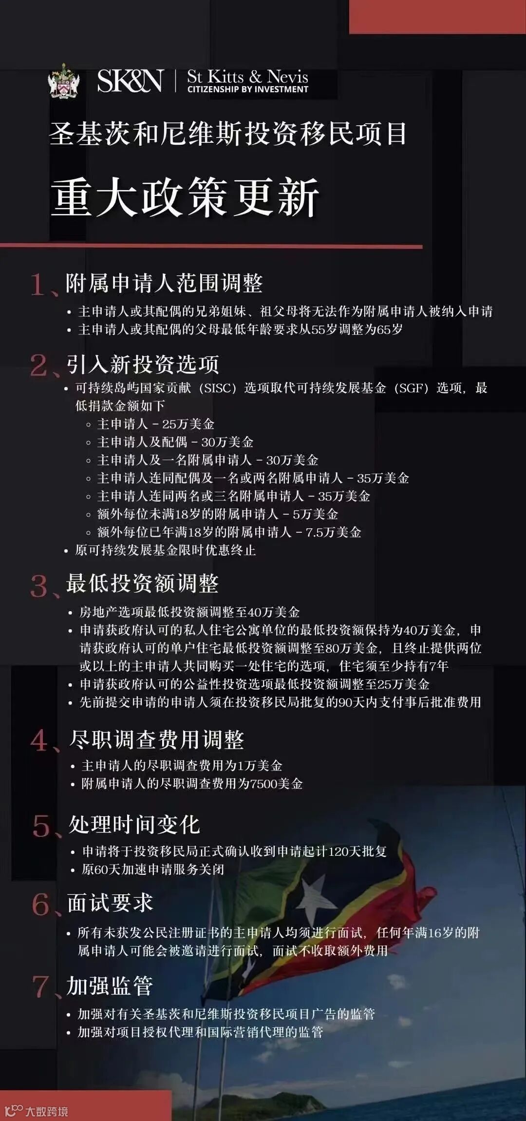 圣基茨·尼维斯颁布最新政策,以进一步提升其投资移民项目的完整性和竞争力。此次政策更新包括以下七大重点: