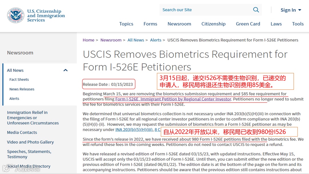 此前的3月15日,美国移民局也曾公布一项数据:自2022年新政开放以来,共接受了980份I-526申请。