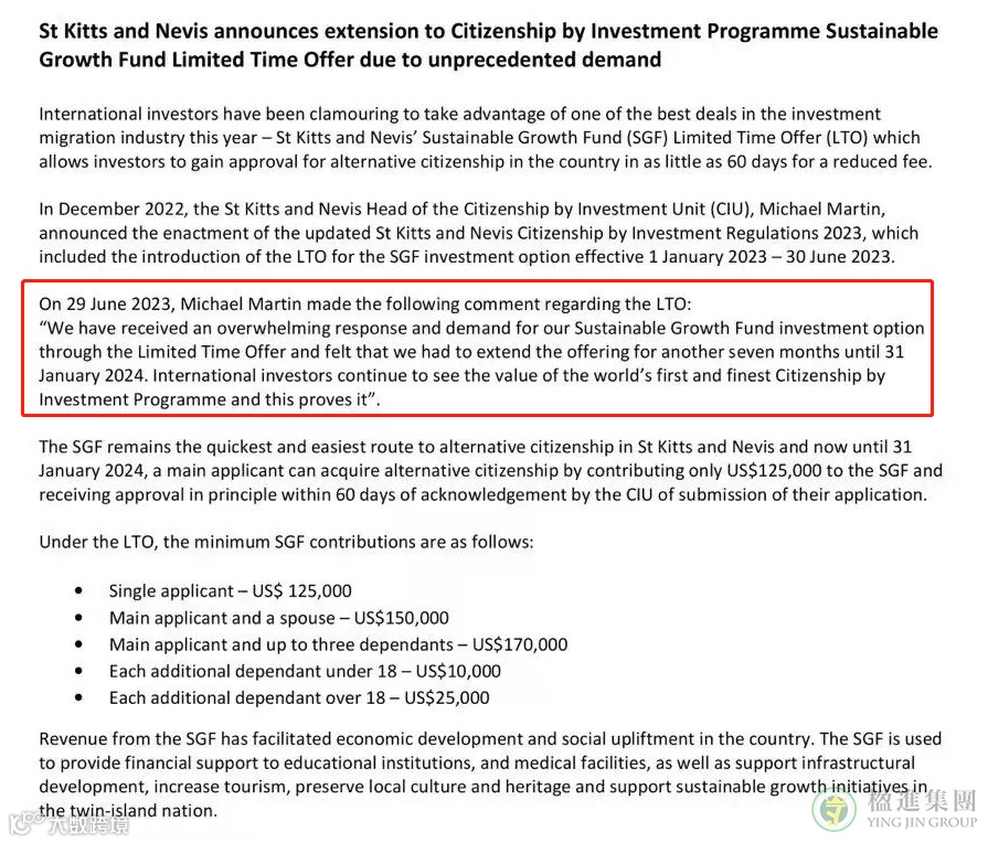 本次优惠延长是投资者申请圣基茨和尼维斯公民身份的绝佳机会!