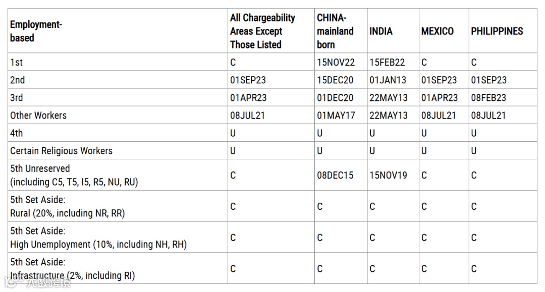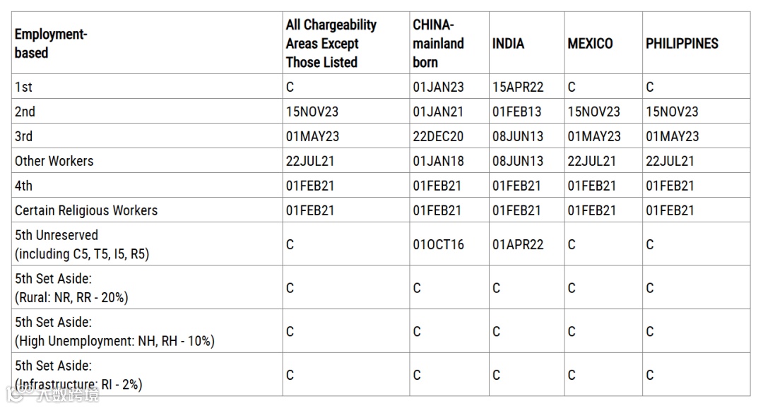 EB-5预留类别(乡村,高失业率地区以及基建项目):无排期