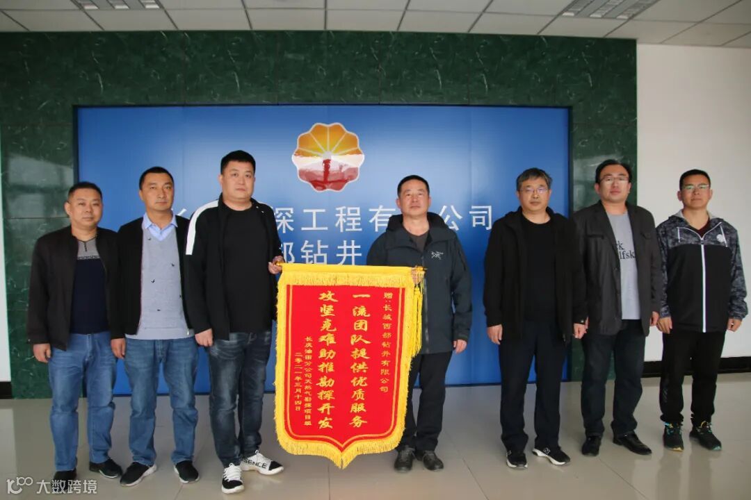 3月17日,长城钻探西部钻井公司榆林驻地迎来甲方三位客人。他们是长庆油田天然气勘探项目组人员,专程来向西部钻井公司赠送一面"一流团队提供优质服务,攻坚克难助推勘探开发"锦旗和一封表扬信,对西部钻井公司50682队出色完成集团公司重点风险探井给予扬信和感谢。