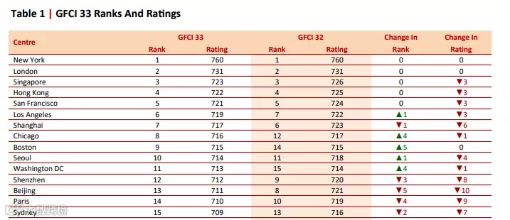 近日,英国智库集团与中国深圳综合开发研究院联合发布第33期《全球金融中心指数(GFCI)》报告。