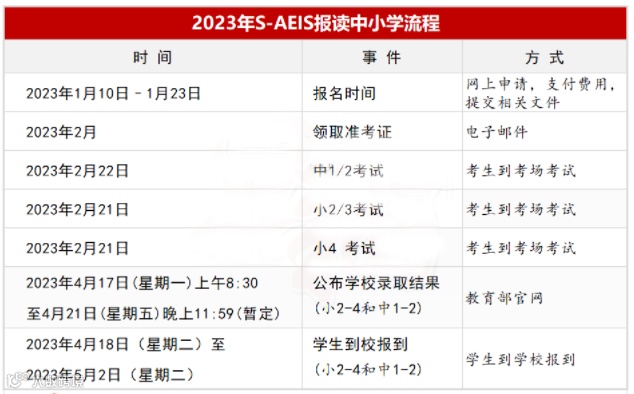 报名条件:国际学生(非新加坡公民(SC)或非新加坡永久性居民(SPR))如未能在新加坡学校就读,并希望于2023年4月或5月申请入读小学2-4年级和中学1-2年级,均可报名参加S-AEIS考试。