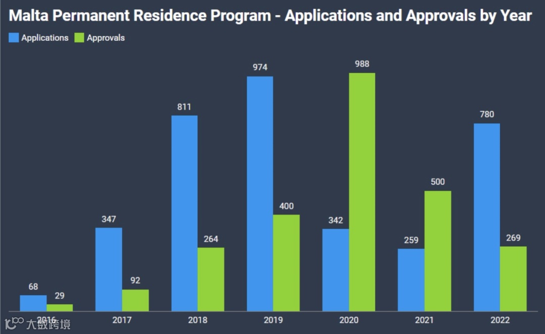 截至去年底数据显示,目前马耳他永久居留计划共收到3,580宗申请。其中2022年,马耳他永久居留计划收到了780宗申请案,是前一年的两倍多。