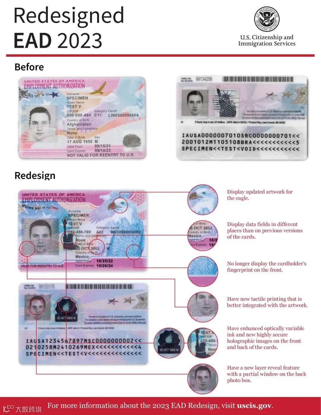 为增强绿卡和工卡的安全性,防止篡改、伪造和欺诈,美国移民局在官网发布通知,自当地时间2023年1月30日起换发新版绿卡和工卡。