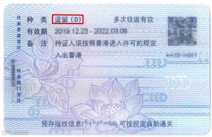 *注意:港澳通行证有效期需在2年以上,如不足需要重新换证+D逗留签