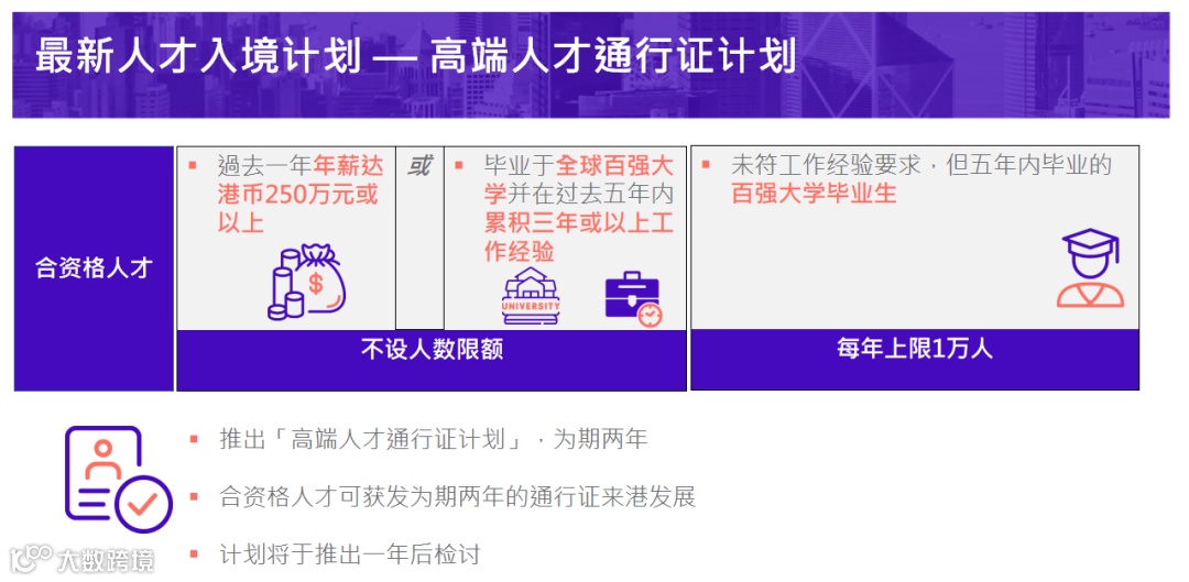 自从香港政府10月份施政报告公布的人才政策,透露出种种利好消息,频频刷爆朋友圈。其中备受瞩目的就是新推出的高端人才通行证计划(简称“高才通”计划),高才通计划旨在吸引世界各地具备丰富工作经验及高学历的高端人才来港探索新的发展机遇。