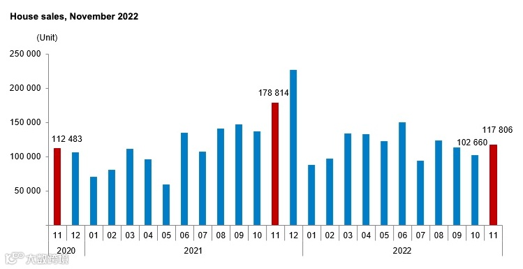 据土耳其统计局发布的最新数据显示,11月份土耳其房产销量共成交117,806套,比上个月增长13%。其中伊斯坦布尔依然是最热门城市,房屋销售量为19,687套,占总比16.7%。