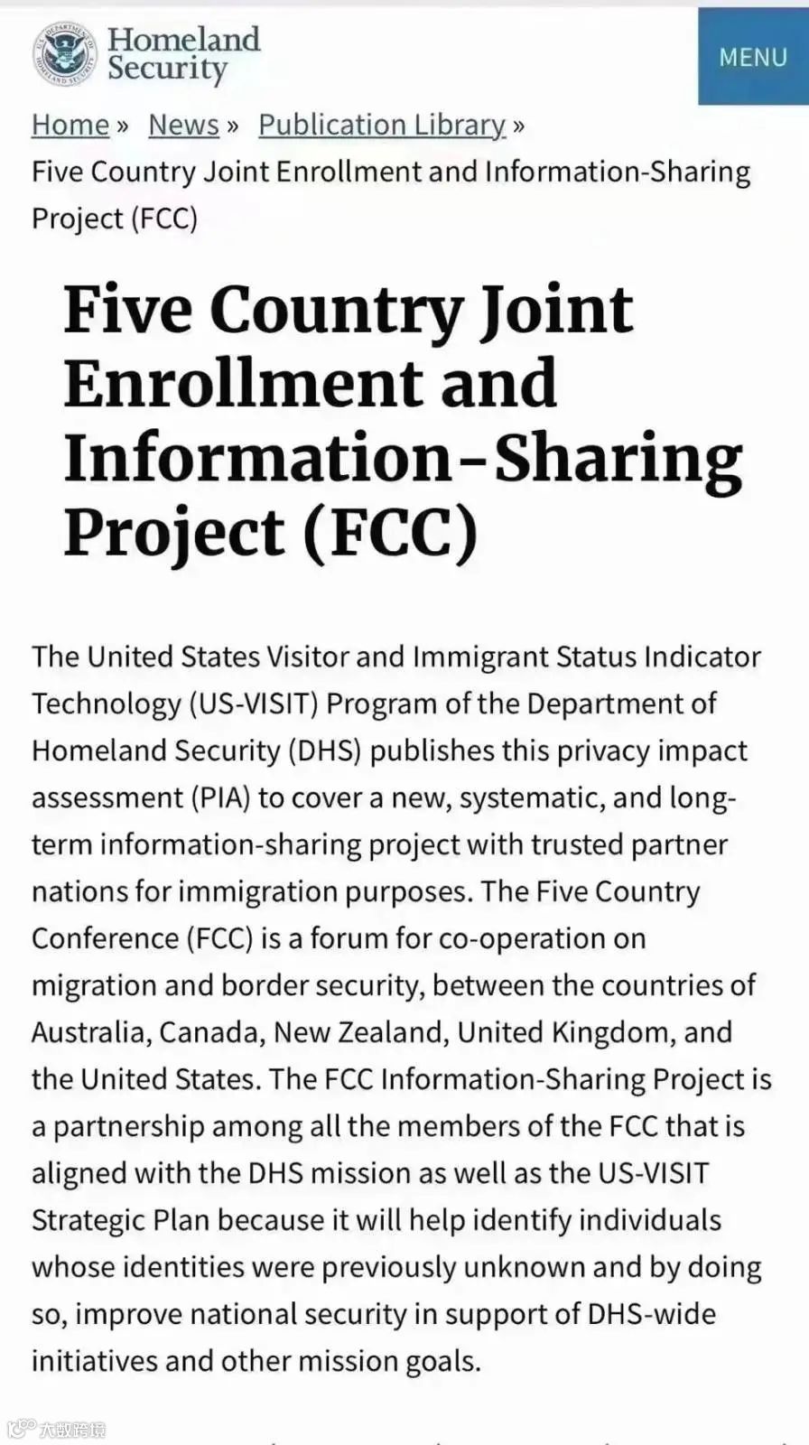 根据美国国土安全部(DHS)的说法,这是一项:新的、系统的、长期的信息共享项目,与可信赖的伙伴国进行移民活动。