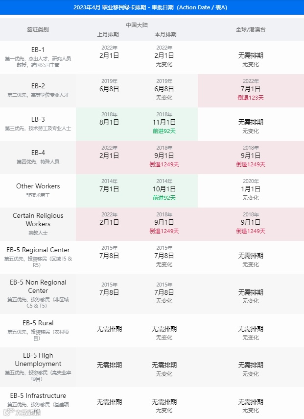 2、EB-4倒退1249天,非技术劳工前进92天,宗教人士倒退1249天。