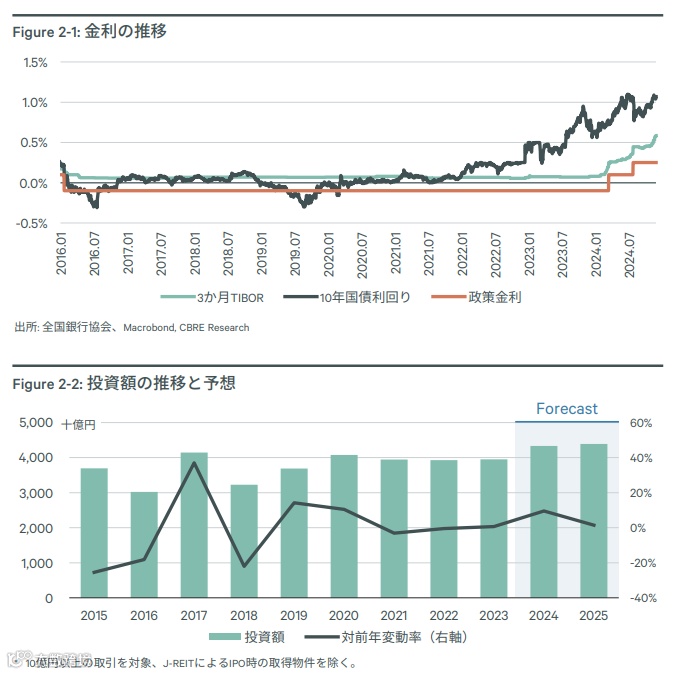 根据不动产服务大公司CBRE预测的2024年日本商业房地产交易额(10亿日元以上)预计将首次突破4万亿日元已经达成,较2023年增长约10%。并且2025年有望持续增长。