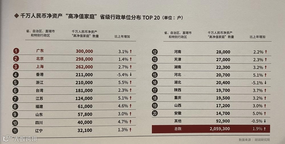 —拥有亿元人民币家庭净资产的“超高净值家庭”数量达到13万户。