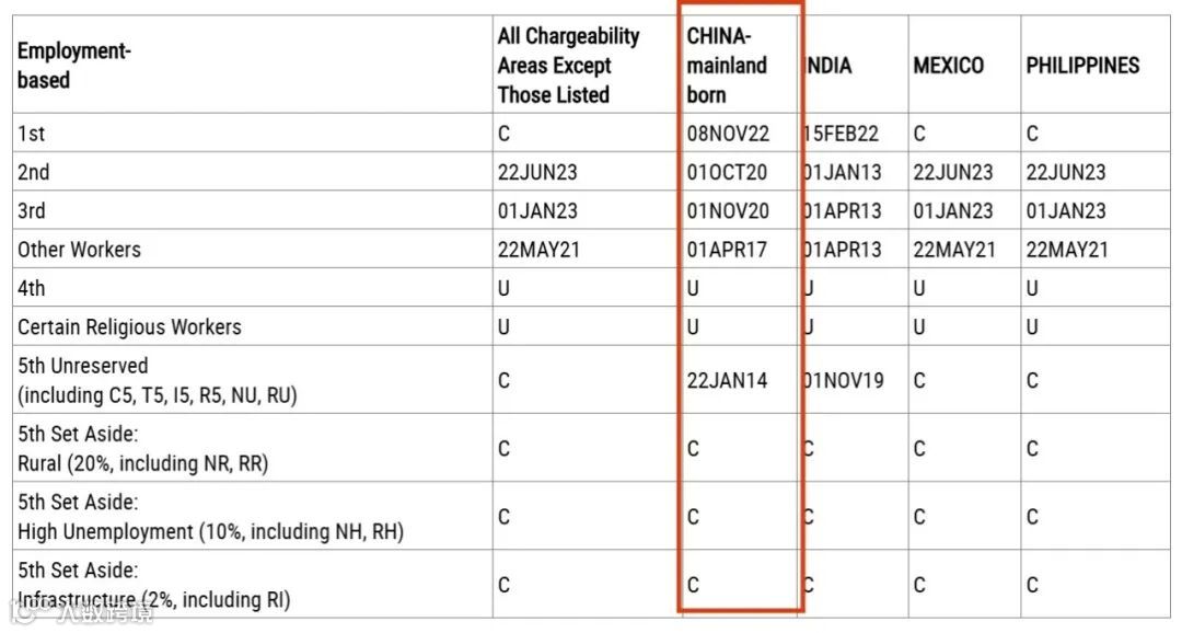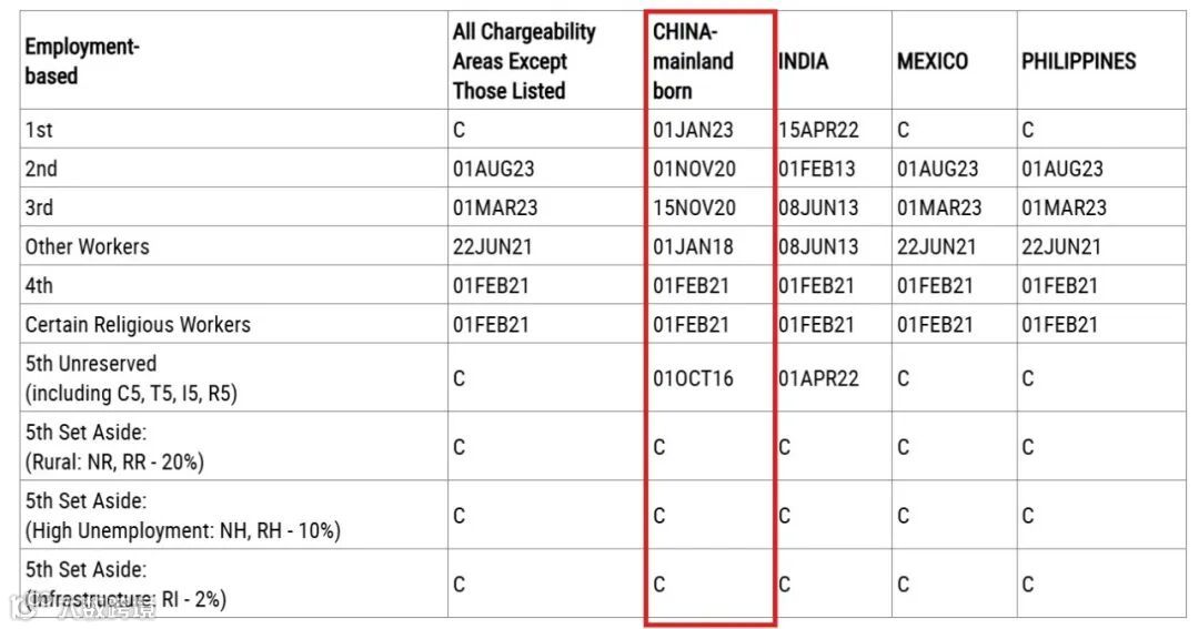 EB-5预留签证类别:无排期