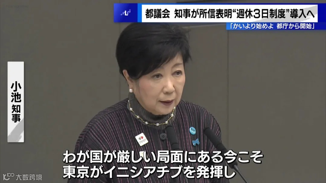 在12月3日的东京都议会第四次例会上,东京都知事小池百合子宣布了一项重要政策:自2025年财年起,东京都政府部门的员工将实施更加灵活的休假制度。