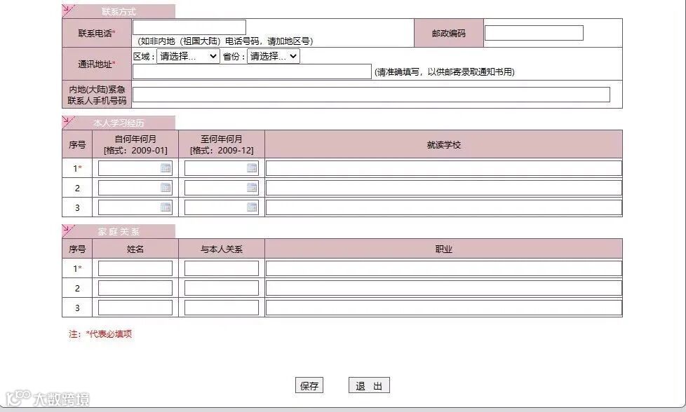 填写联系方式、本人学习经历、家庭关系,如下图:
