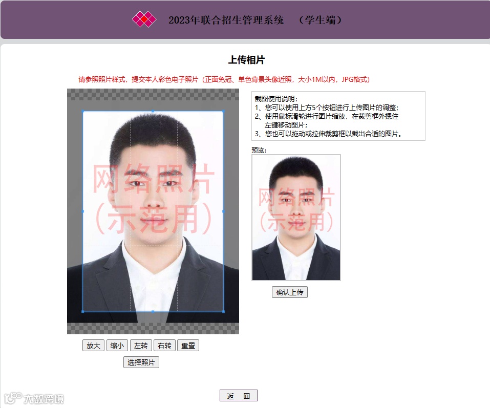 点击选择照片,系统会自动调节照片尺寸: