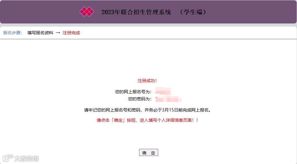 3、注册成功后,务必记录保存报名号和密码,便于后续登录。注册信息,不能更改。