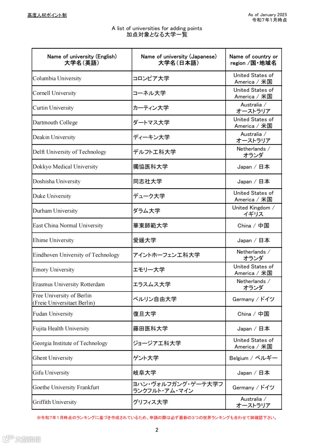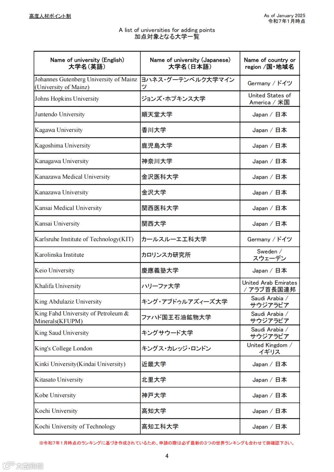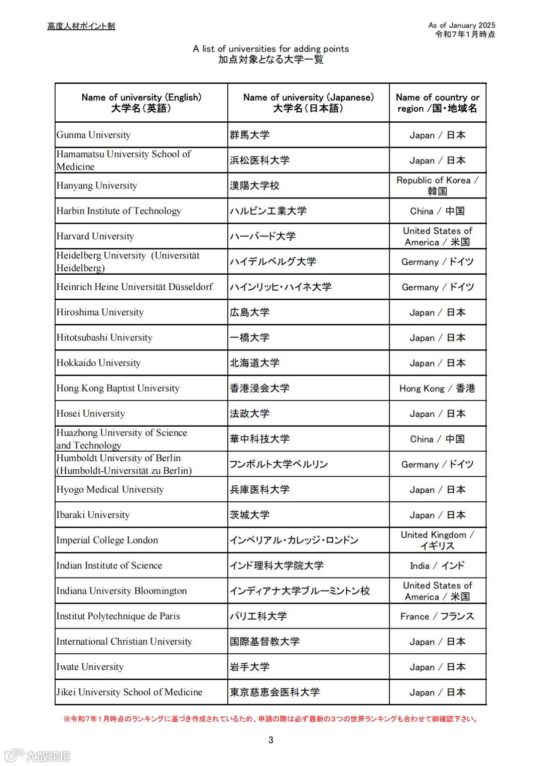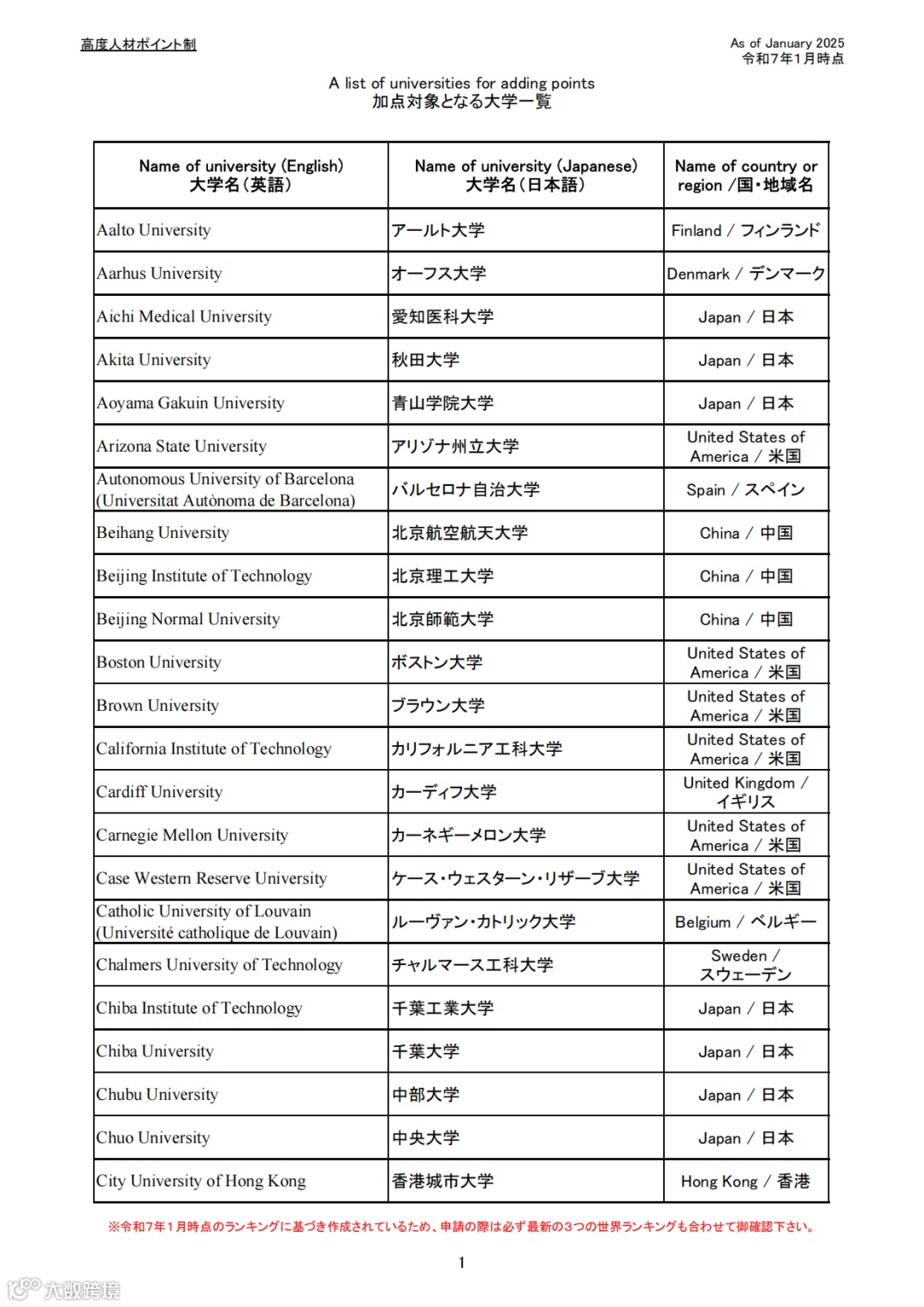 近年来,日本为吸引全球高端人才,推出了高度人才签证积分制。其中,毕业于全球或日本顶尖高校的申请者可以获得额外加分,这让许多高学历人才离日本高度人才签证更近一步。最近,日本入国管理局更新了高度人才签证的加分大学名单,快来看看你的母校是否在列吧!