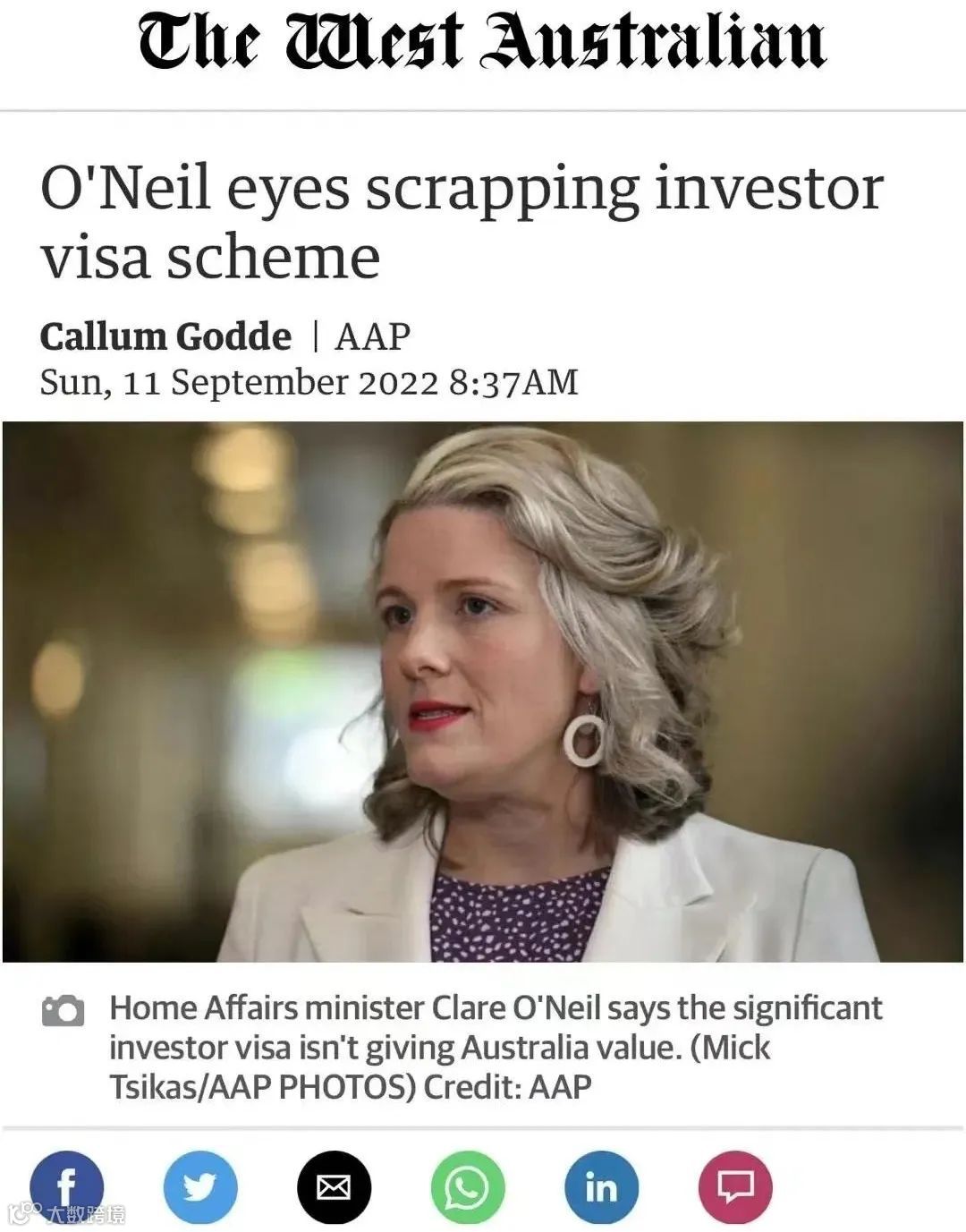 该计划由Gillard政府于2012年推出,内政部长Clare O'Neil表示,这个移民类别已经成为一个问题。