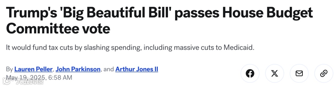 据白宫官网数据,截至目前法案已完成预算委员会审议,预计将在5月26日由众议院全体投票,并在6月底前送至参议院。一旦在7月4日前签署,总统便可正式签法实施。