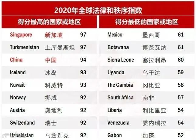 除此之外,这里的政局稳定,法律严明,使许多亚洲富豪多年来都将新加坡当成金融避风港。在2020年全球法律和秩序指数排行榜中,新加坡以97分的成绩荣登榜首!