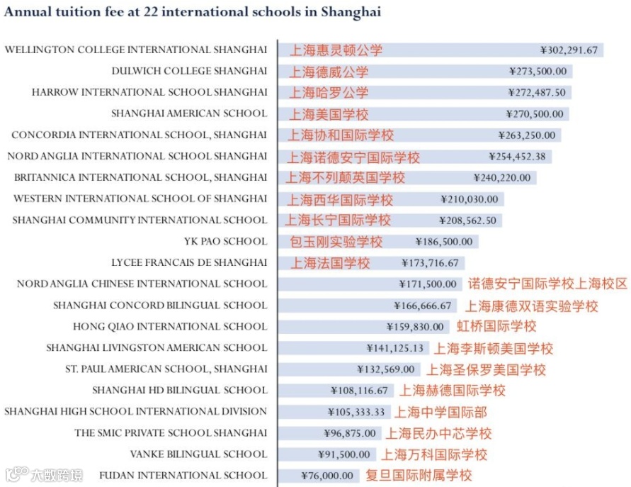 根据这份排名,三所来自英国的学校牢牢占据了榜单的前三位,成了上海最贵的国际学校。