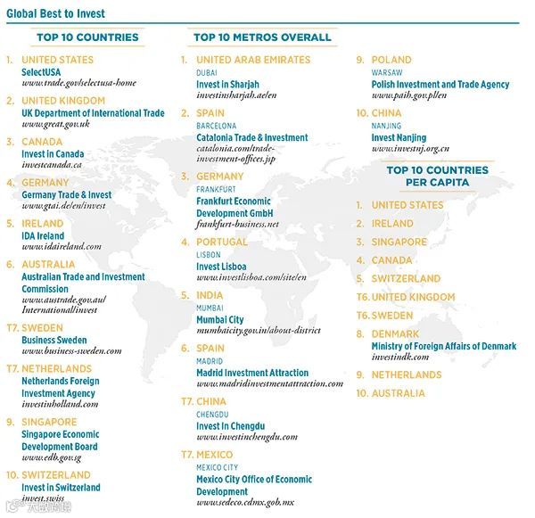 日前,2022年5月刊的《Site Selection》杂志报道发布了第14届年度全球最佳投资目的地排名,该排名衡量了商业投资前景方面表现最佳的国家和都市区。其中,爱尔兰排名全球第五,西欧第三,仅次于英国和德国,领先于瑞典、荷兰等。而在人均最佳投资目的地排名中,爱尔兰排名全球第二,西欧第一。